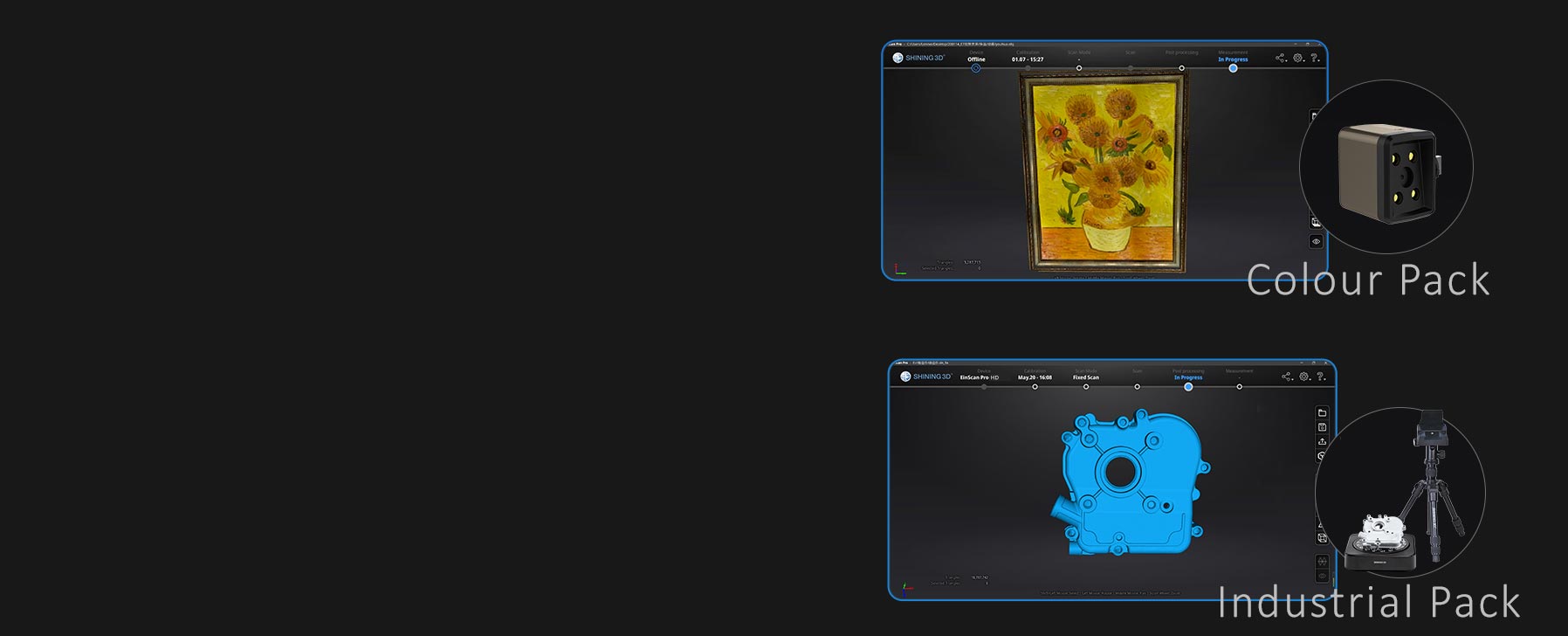 Optional Colour Pack and Industrial Pack expand EinScan Pro HD's capabilities to colour capturing and scanning automation.